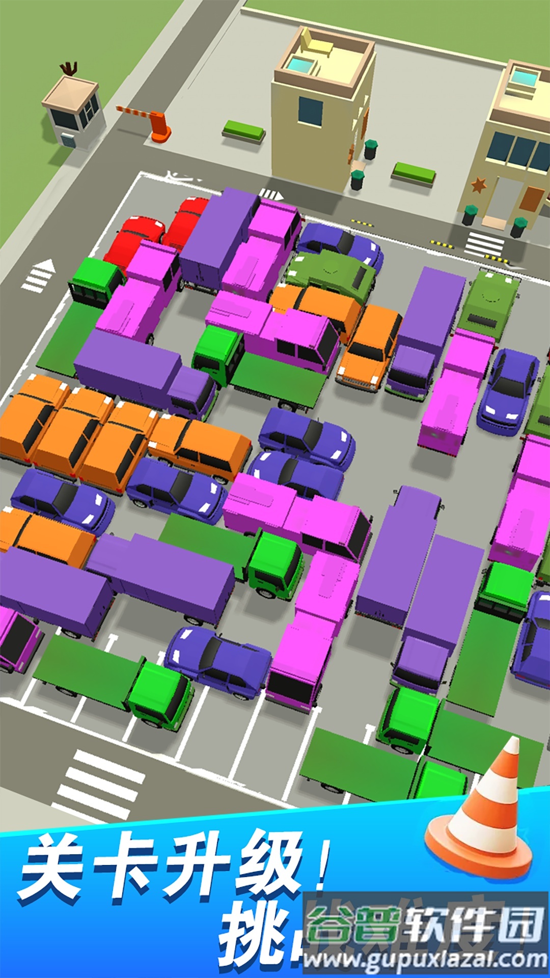 1、任务挑战:玩家要在各类复杂场景中挪动车辆,完成对应的任务目标,比如让所有车辆顺利驶出停车场;
