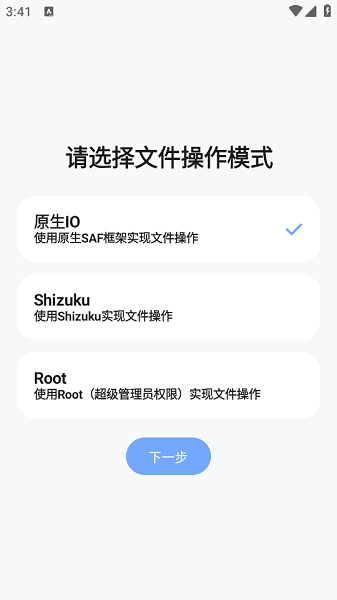 SAF(原生IO)默认模式; 依托Android系统原生文件操作框架运行,适配绝大多数主流机型;