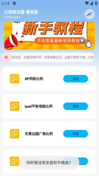 比例修改器尊享版是比例助手的升级版本,专门为广大和平精英玩家打造,是口碑相当不错的画质辅助工具,就算是低配置的老旧手机,用它也能流畅运行吃鸡游戏,平台内部设置了多种不同的比例方案供用户自行选择,想要使用对应方案需要用户自己完成指定任务。