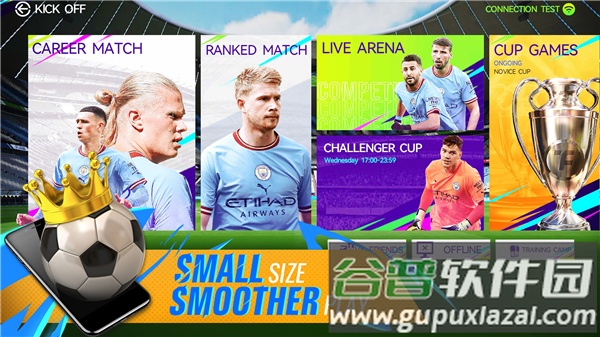 这款游戏的安装包体积比同类产品小很多,你可以快速完成下载安装,不用等太久就能进入游戏,同时所有内容都保持了高制作水准,能给足球爱好者带来优质的游玩感受;