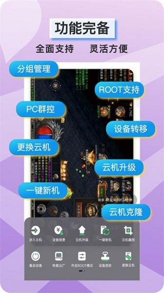 1、【支持优质手游】:已经完成市面上99%手游的适配工作,能让普通手机变成全天候在线的游戏专用设备,全程零流量消耗、零本地耗电,不会受断网、关机影响,也不会占用本地存储空间,能让本地手机运行更流畅,就算关机断网也能继续运行手游;
