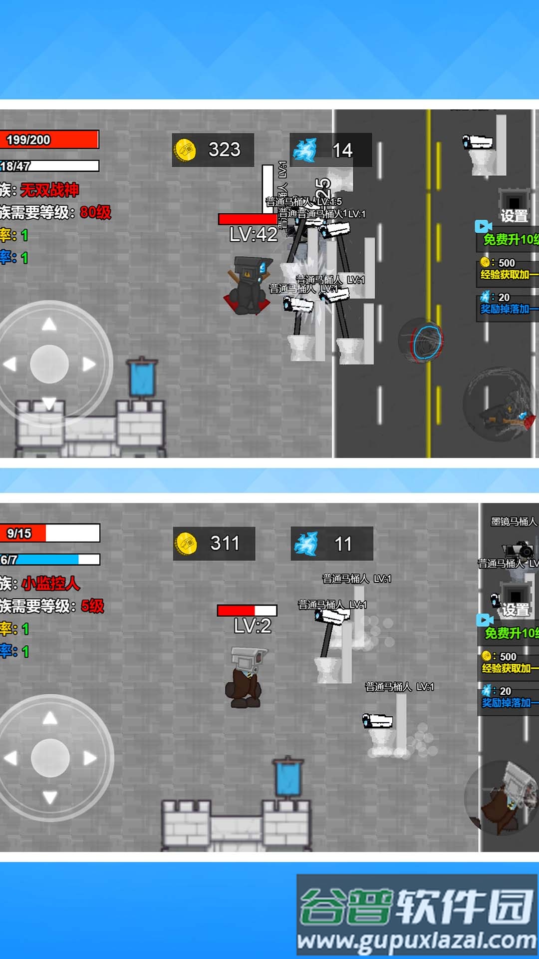 1、角色进化:玩家可以合并相同的马桶人完成升级进化,大幅提升技能威力与各项属性,让角色战力逐步攀升,可以轻松应对后续强度越来越高的敌人与关卡挑战;