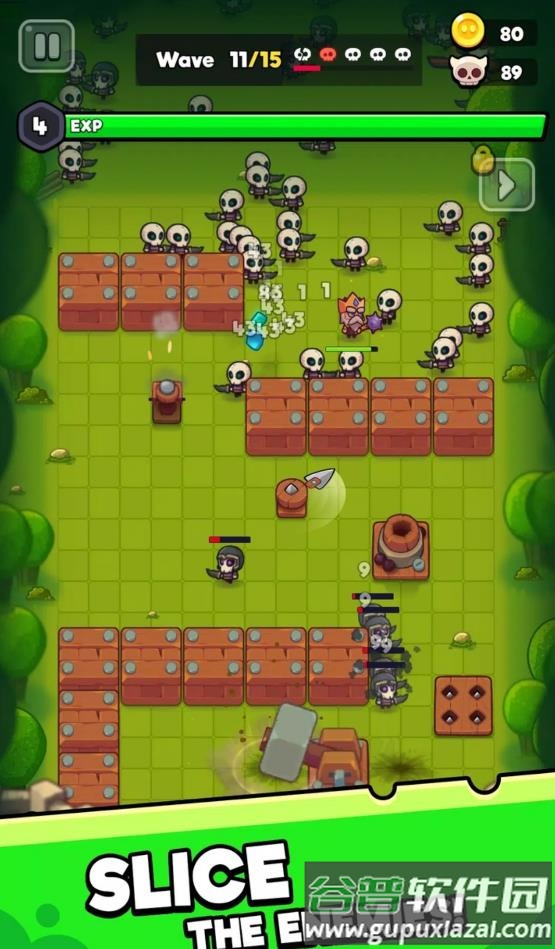 4、滑动屏幕可以操控自身角色移动,角色也会自动攻击进入自身攻击范围的敌人;