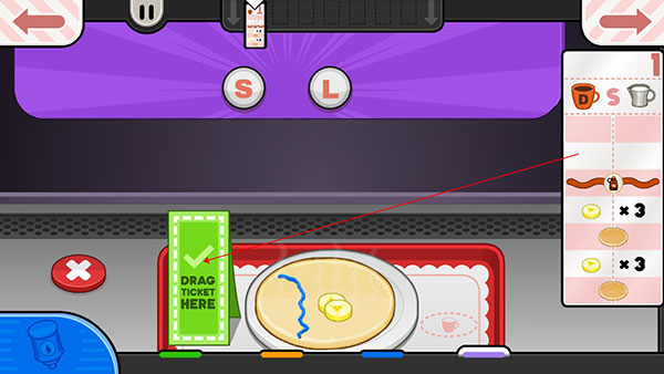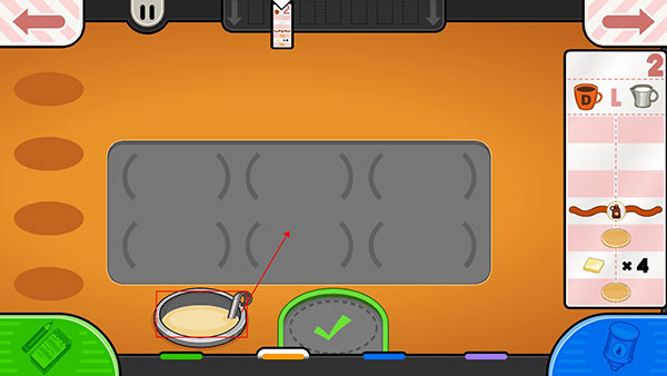 4、面饼烤制完成后开始加配料,将托盘往煎饼的位置拖动,煎饼就会自动掉落到托盘上。