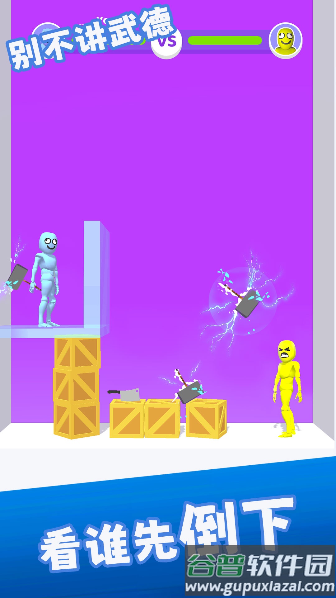 游戏里玩家要操控动作魔性的布娃娃小人,用各类不同的物品发起攻击,火箭、石头、小刀、保龄球都能当武器,朝对面敌人投掷即可。游戏规则很简单,谁能用脑洞大开的方式先把对面打到出局,就能拿下闯关胜利,上手没难度,玩起来笑点很足。