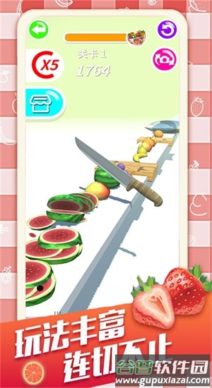 2、面对不断向屏幕飞来的各类水果,需要操控刀具连续切割,才能累计更高分数;