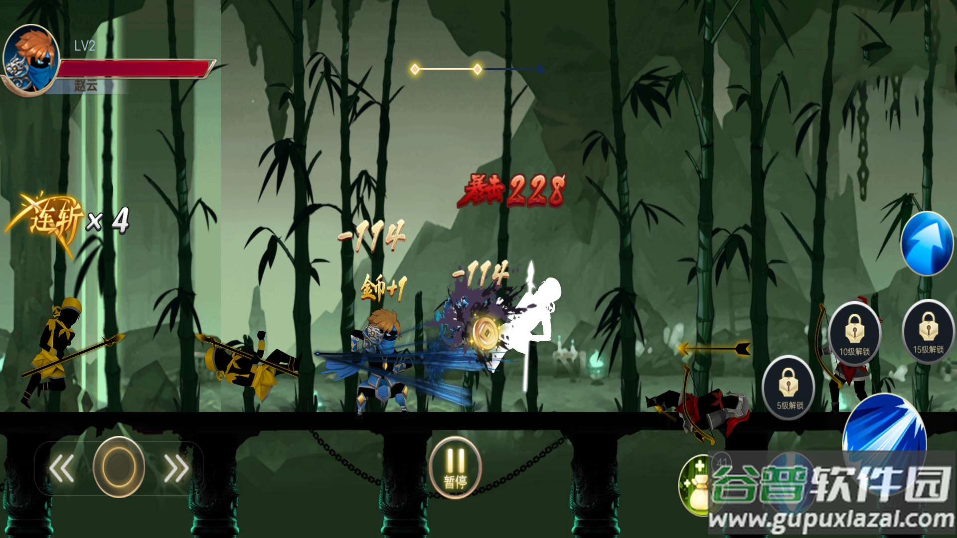 1、玩家开局化身武将赵云,在不同的战场中厮杀征战,既可以正面强攻突破防线,也能走谋略路线智取敌营,闯关中还能收集各类珍稀道具,一步步扩大自己的战力优势;