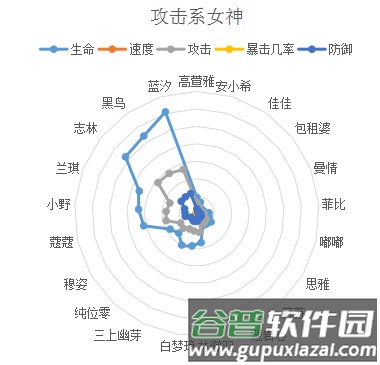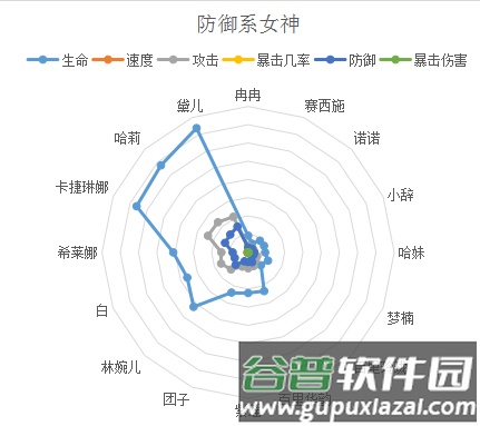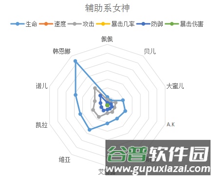 以下为不同系列女神的技能属性分布雷达图,供玩家参考: