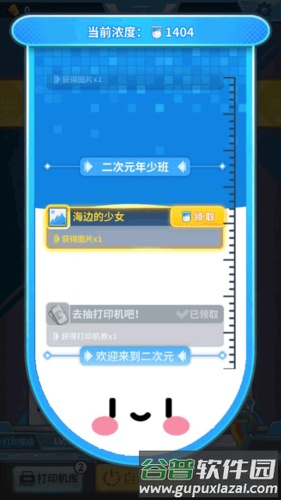2、每成功打印一行,都会获得一定量的二次元液体并存入浓度杯。浓度达标后可解锁额外奖励。
