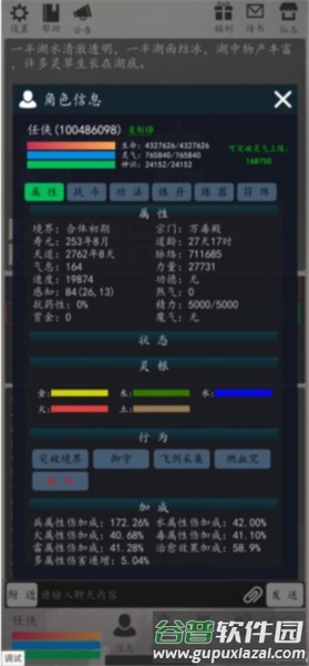六、功法突破存在成功率,层数越高成功率越低;可通过添加五行灵材提升概率,突破界面中的五行属性圆圈可以点击操作。