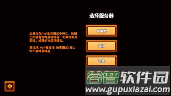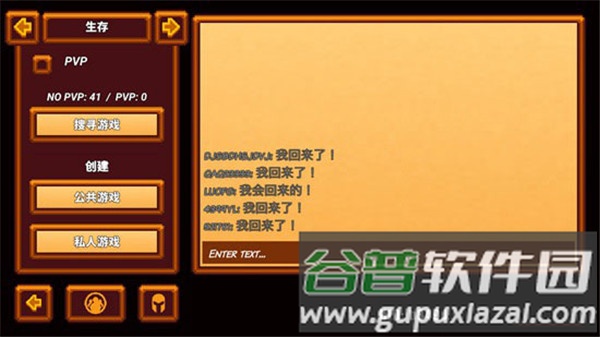 5、选定存档后进入联机大厅,点击左上角箭头可切换不同模式,包括生存、PVP竞技场、地牢等。