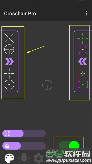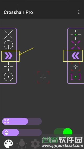 5、点击左侧向右箭头,可切换至更多准星样式。