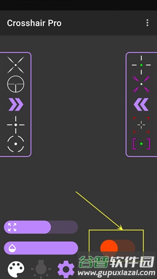 3、点击中间灯泡图标,可开启准星发光效果。